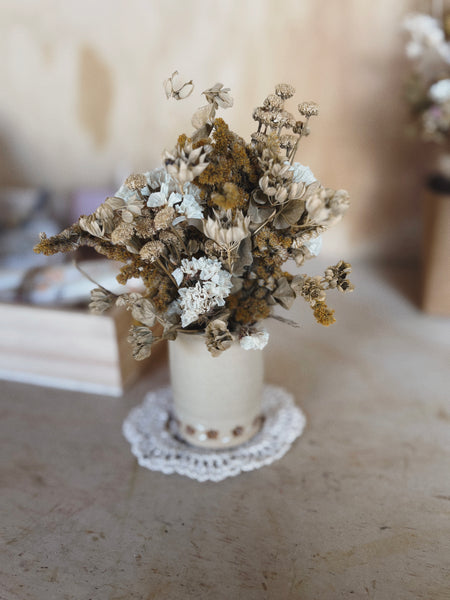 • Mini Dried Flower Posy – gathered and arranged in your vase, with soft, wild charm